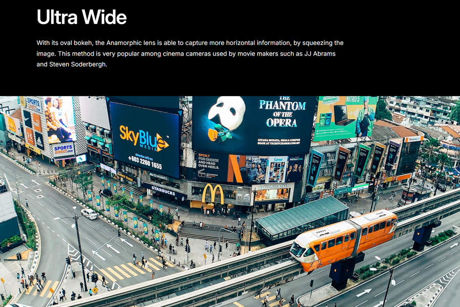 - ลักษณของภาพที่ออกมาจะเป็นแบบ Ultra-wide ที่มาพร้อม Bokeh และแสง Flare สไตล์ Cinematic