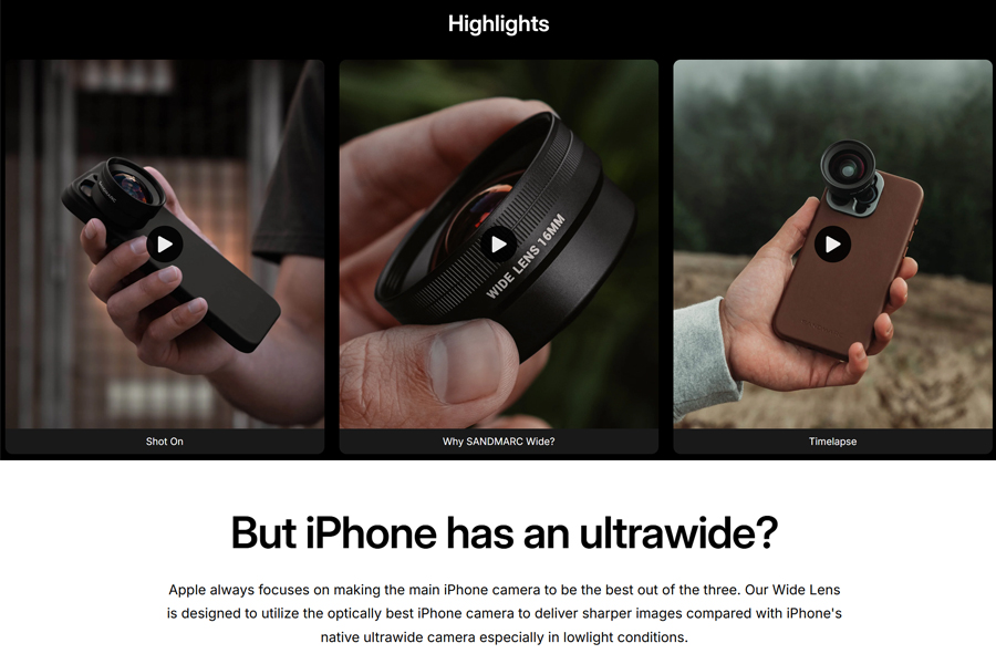 - ตัวเลนส์ต้องใช้คู่กับเคสของ Sandmarc เพราะด้วยเกลียวที่มีลิขสิทะิ์เฉพาะ