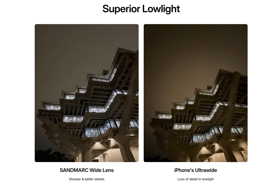- ด้วยการเสริมของตัวเลนส์จะทำให้ภาพที่คมชัดกว่าการใช้ Digital Zoom ในแบบต่างๆ ผู้ใช้จะได้ภาพที่คมชัดจากภาพในเลนส์หลักที่เสริมด้วยเลนส์ของ Sandmarc