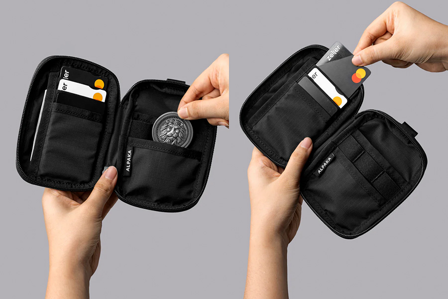 - ช่องด้านหน้าพร้อมซิป YKK AquaGuard และตัวดึงซิปแบบสลิปล็อค