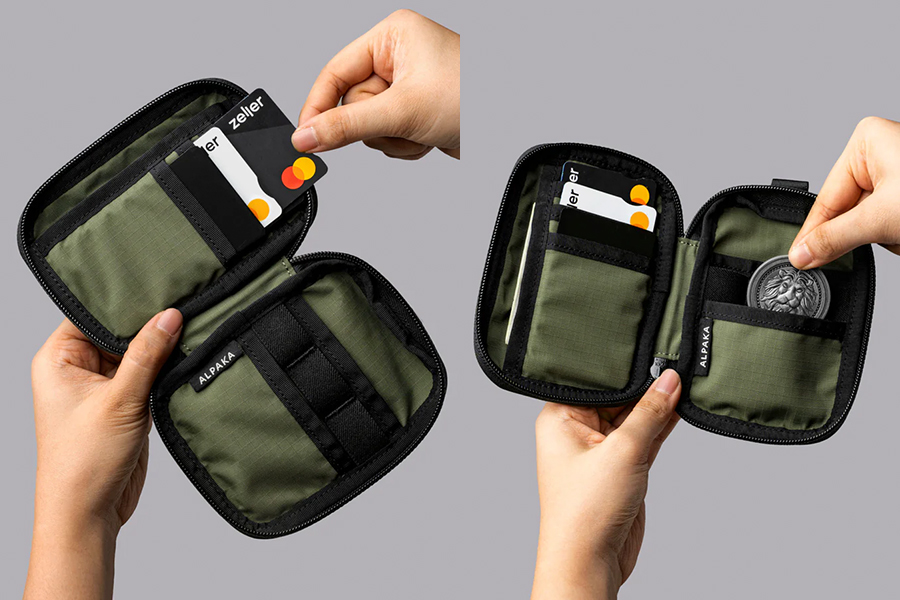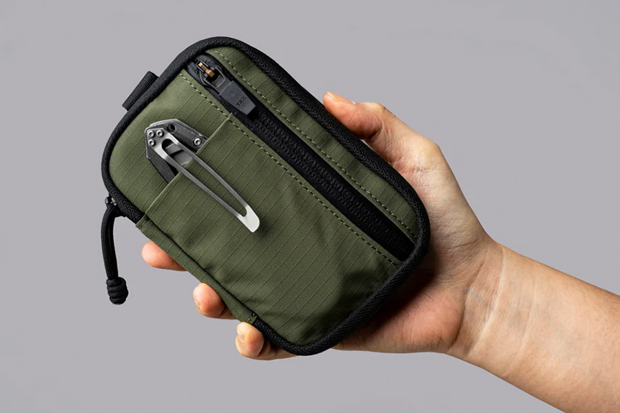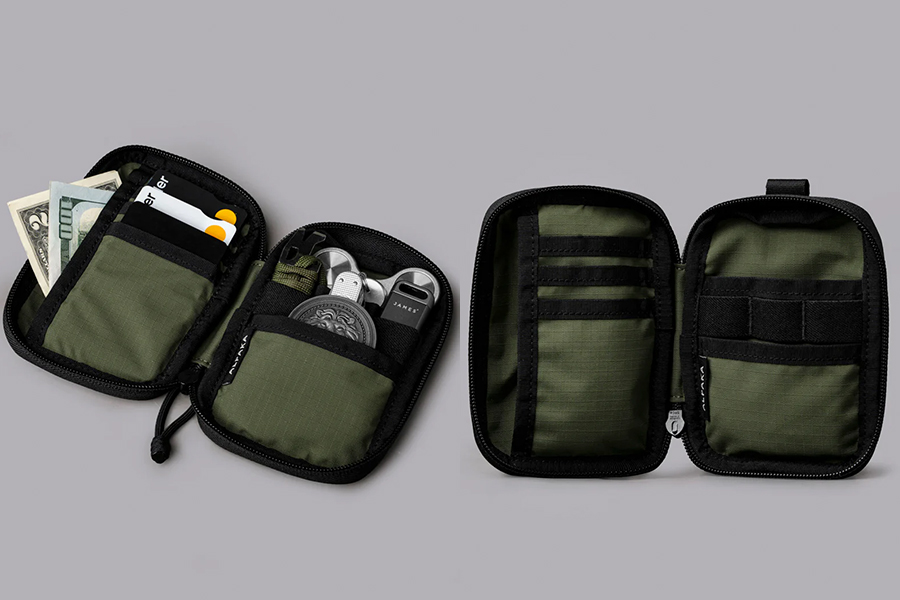 - ช่องด้านหน้าพร้อมซิป YKK AquaGuard และตัวดึงซิปแบบสลิปล็อค