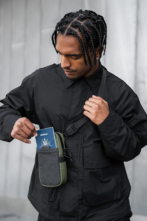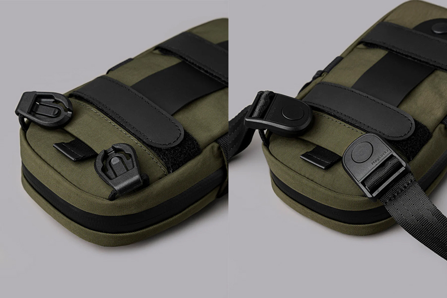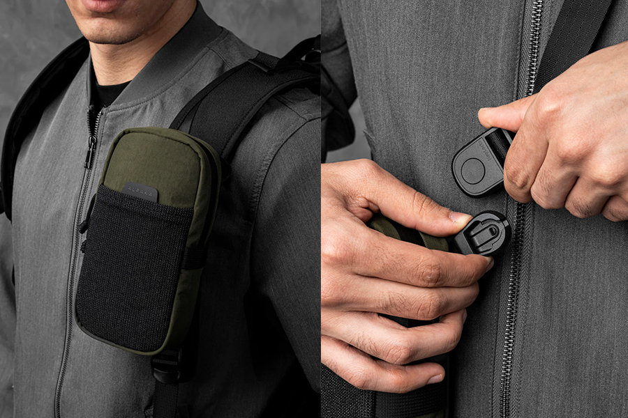 - ช่องด้านหน้าทำจากวัสดุ Stretch-dyne เข้าถึงง่าย
