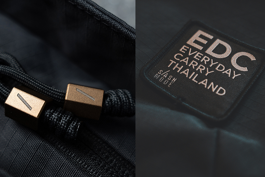 - มี Patch ที่หน้ากระเป๋าติดกับกระเป๋าไปหนึ่งชิ้น ถูกติดด้วยเวลโคร ทุกคนสามารถเปลี่ยนมันได้ตามที่ต้องการ Patch เป็นคำว่า EDC Everyday Carry Thailand ที่เป็นคำที่สื่อความหมายได้ดีที่สุดสำหรับ SlashMode
