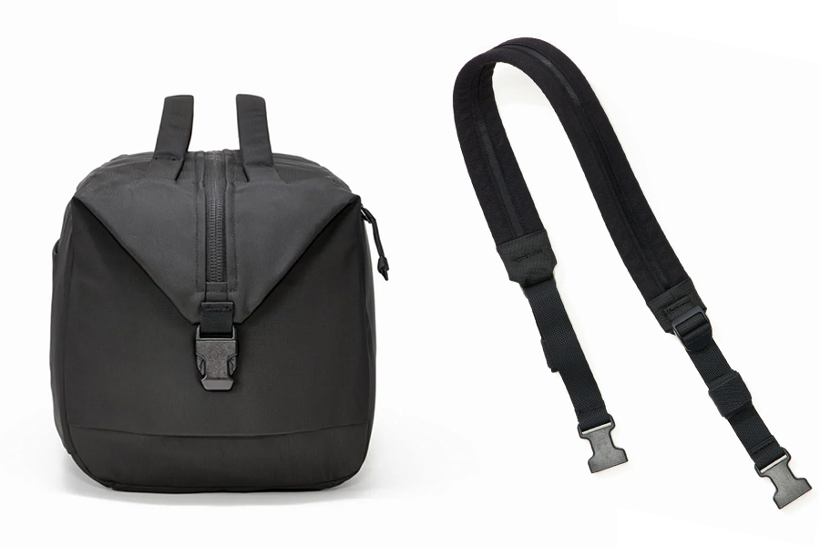 - สายสะพายไหล่แบบถอดได้และปรับได้ ทำจาก ultra-suede พร้อมตัวล็อคสายแบบยางยืด