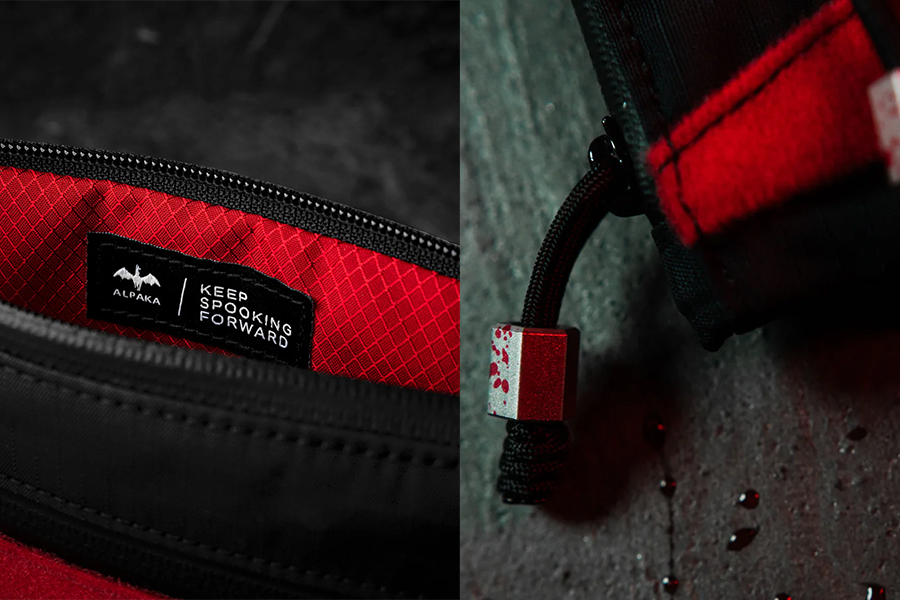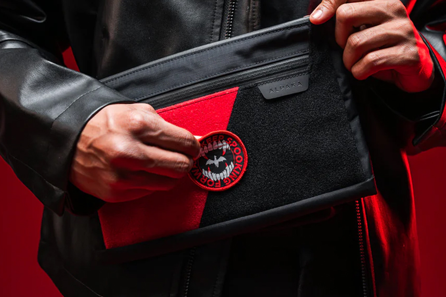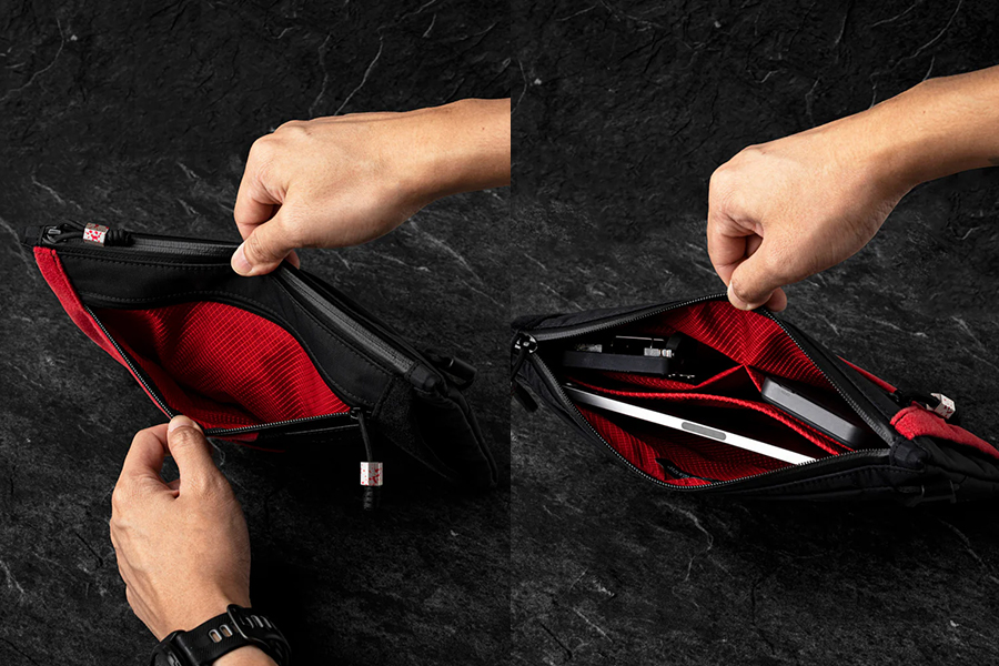 - วัสดุ : Axoflux 210D ripstop nylon in Black, with 100% non-woven nylon in Black and Red (front patch panel)