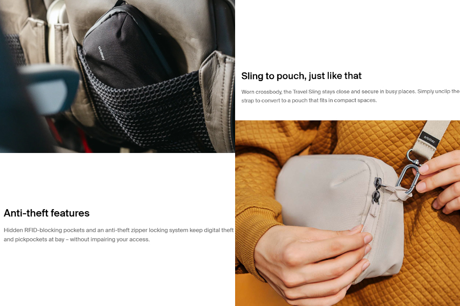 - ช่องกระเป๋าด้านในและด้านหลังซ่อนอยู่ ป้องกัน RFID เพื่อปกป้องข้อมูลสำคัญ