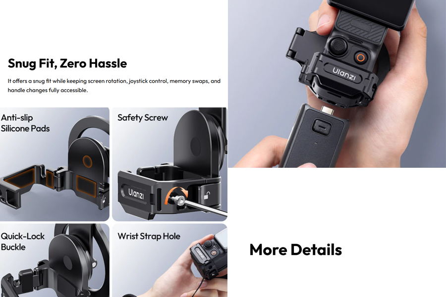 ความหลากหลายในการใช้งาน: ใช้เป็นแท่นตั้งบนโต๊ะสำหรับการประชุมออนไลน์หรือการถ่ายเซลฟี่ ติดผนังหรือพื้นผิวโลหะเพื่อการถ่ายมุมพิเศษ เชื่อมต่อกับ Cold Shoe Mount สำหรับการติดตั้งอุปกรณ์แสง ใช้ร่วมกับขาตั้งกล้องผ่านช่อง 1/4″ และ ARRI Holes