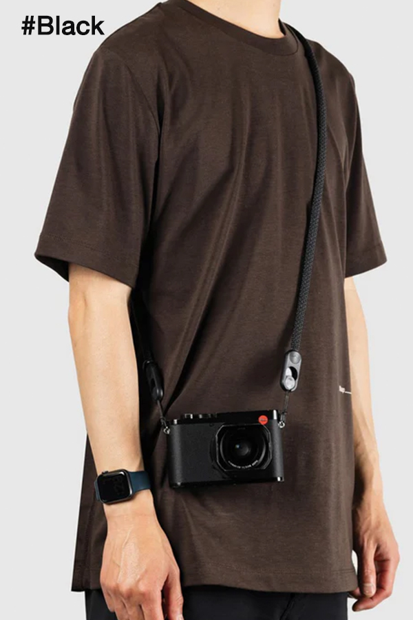 - ห่วงอลูมิเนียมสำหรับเก็บอุปกรณ์เสริมบนตัวสาย หรือใช้สะพายกล้องแบบจุดเดียว (เฉพาะขนาดสะพายข้าง - ไม่มีในขนาดคล้องคอ)