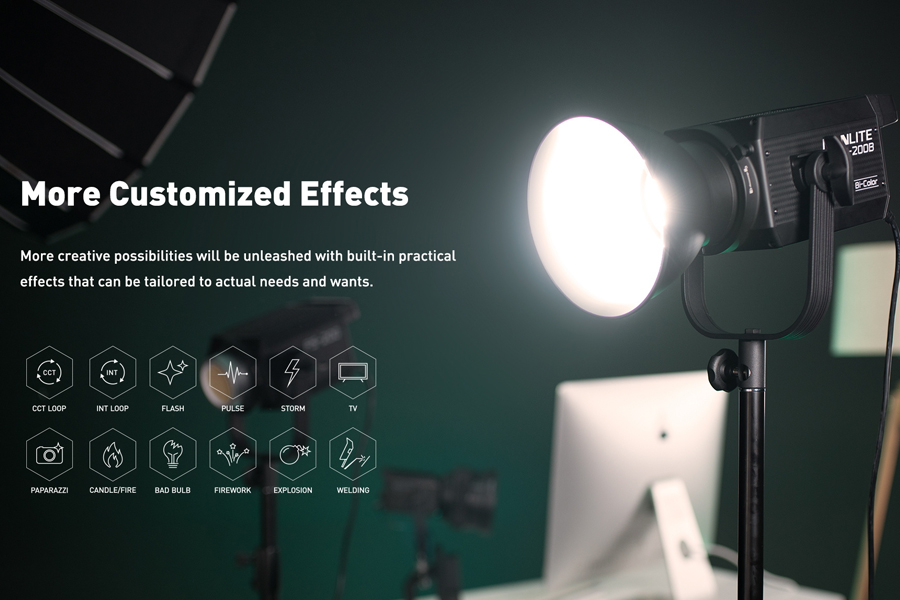 - เอฟเฟกต์ 12 แบบ CCT Loop, INT Loop, Flash, Pulse, Storm, TV, Paparazzi,Candle/Fire ,Bad Bulb,Firework, Explosion and Welding