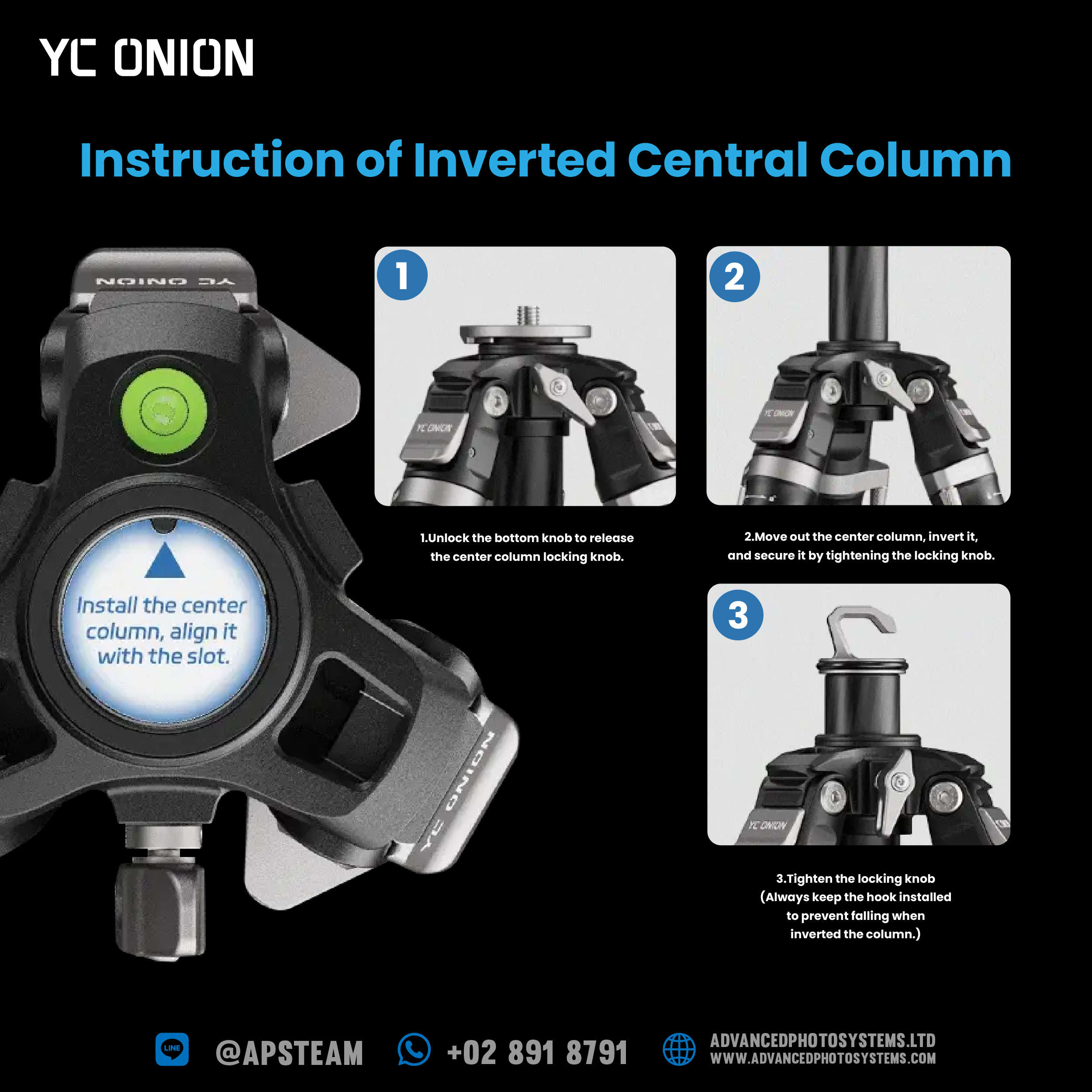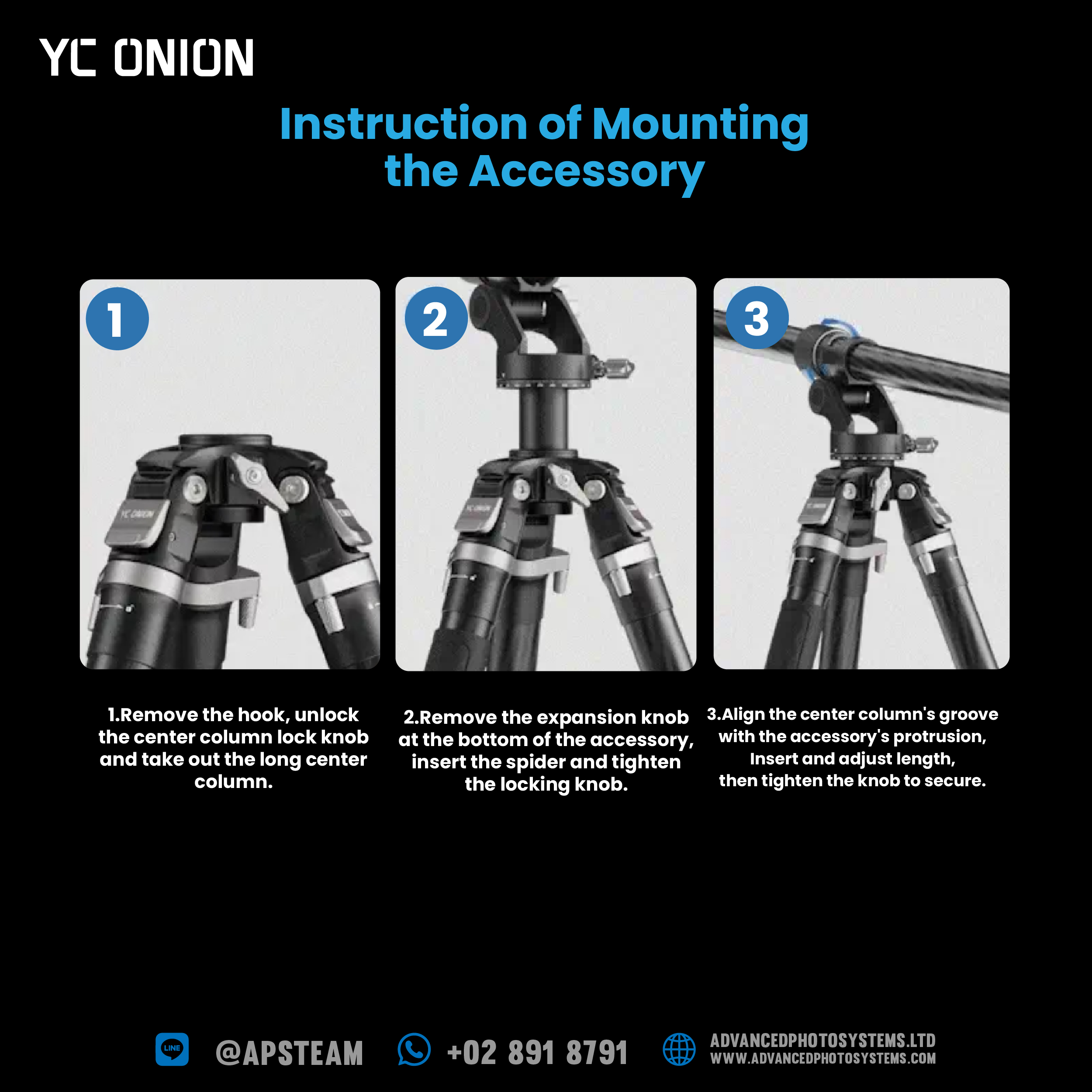 อุปกรณ์ในกล่อง Tako Tripod with Gimble Head&Over Head Rig