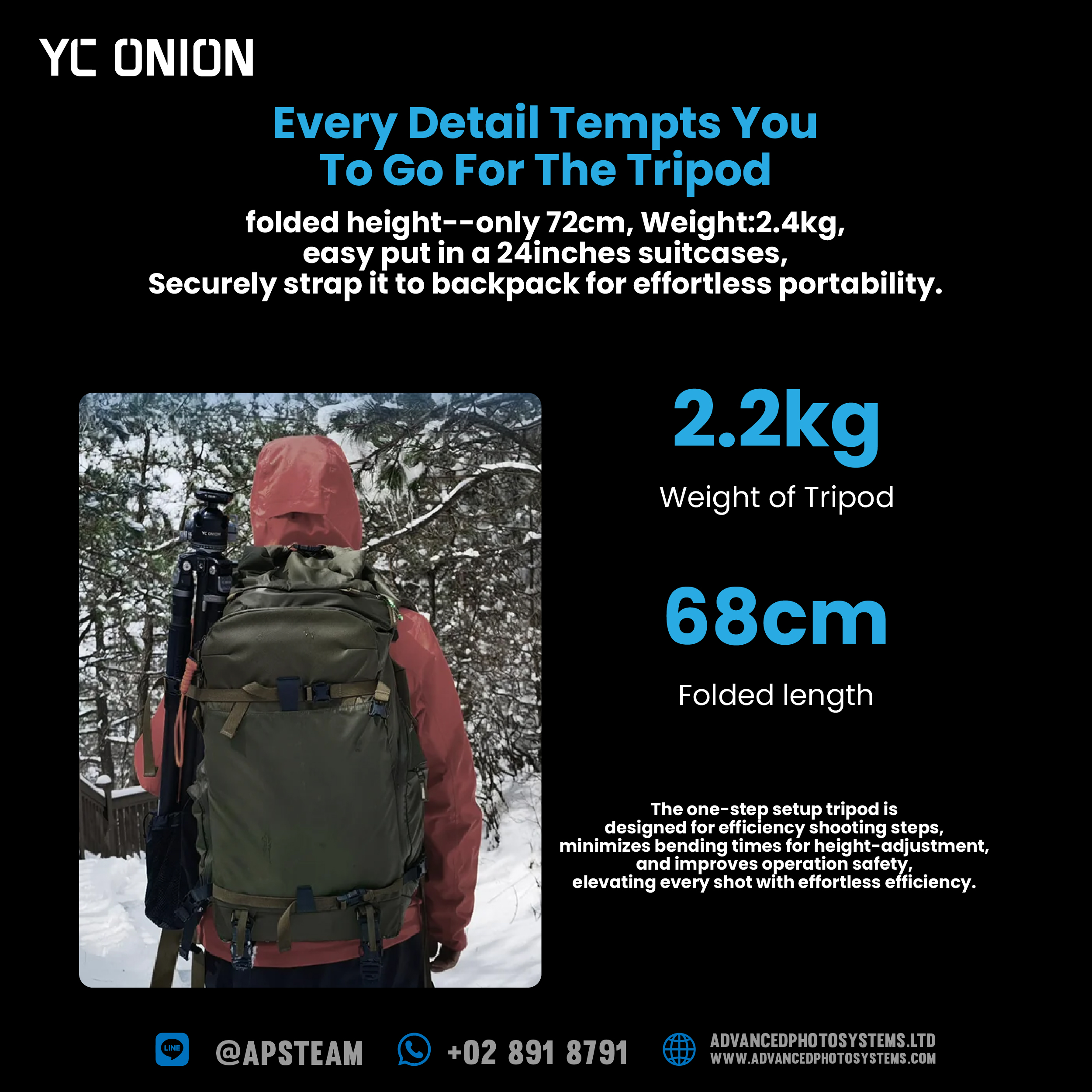 - พับเก็บได้สั้นสุดเพียง 64 ซม.
