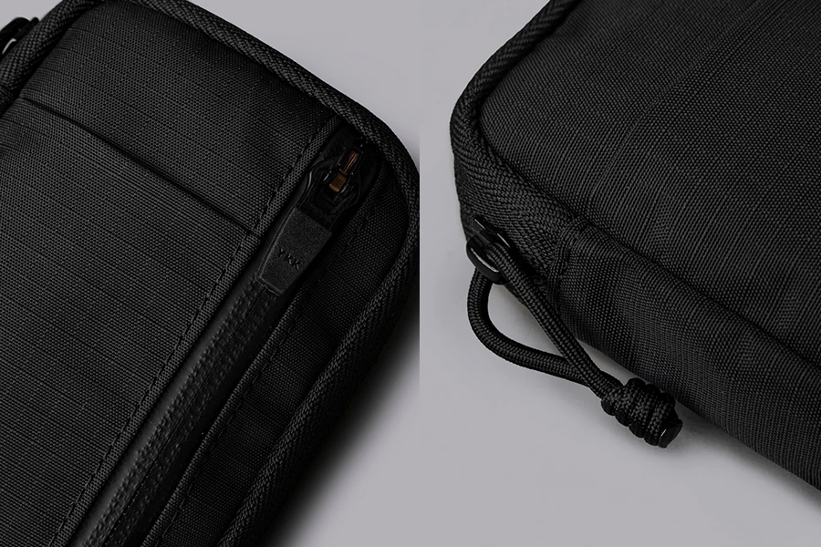 - ช่องด้านหน้าพร้อมซิป YKK AquaGuard และตัวดึงซิปแบบสลิปล็อค