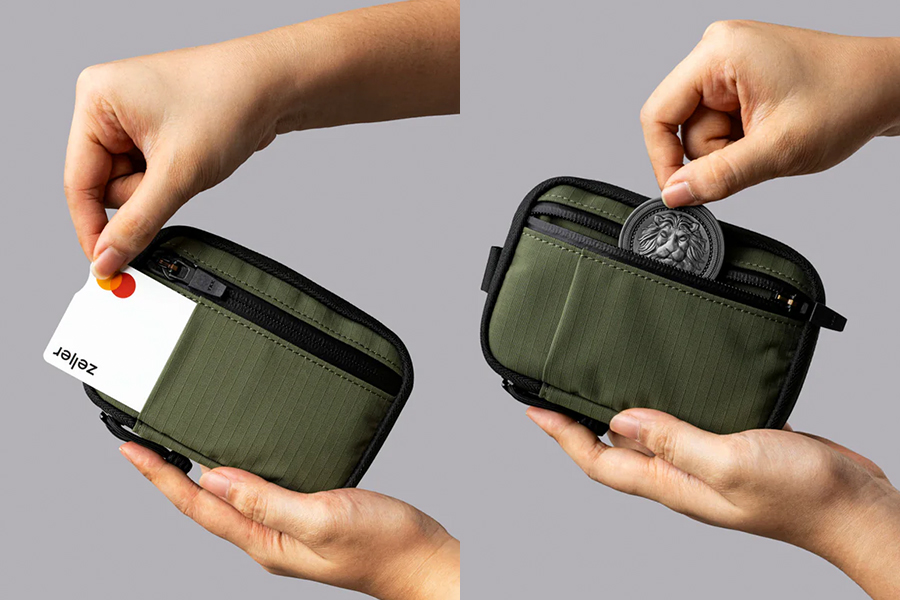 - ช่องด้านหน้าพร้อมซิป YKK AquaGuard และตัวดึงซิปแบบสลิปล็อค