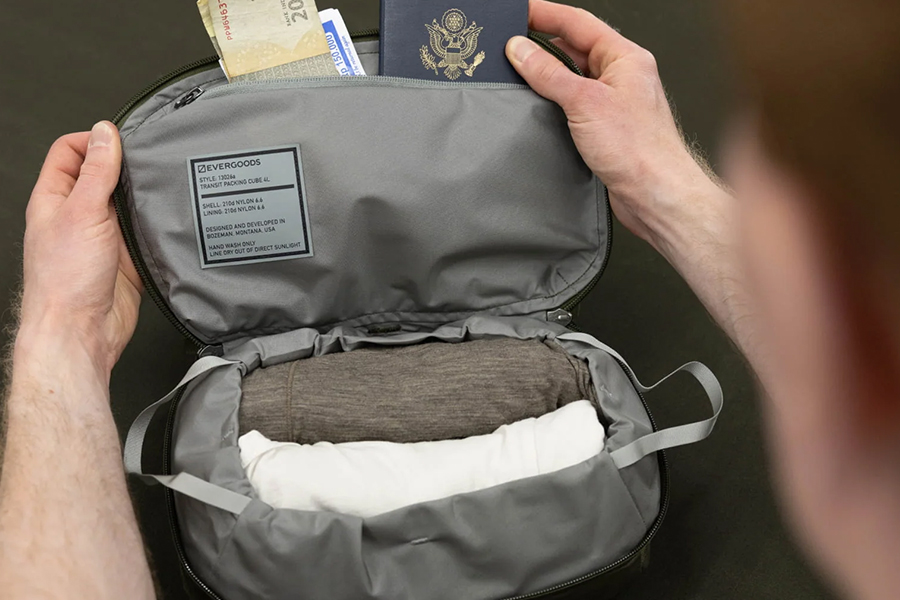 EVERGOODS - Transit Packing Cube 4L คือกระเป๋าจัดเก็บสัมภาระรุ่นใหม่ล่าสุดของเรา ออกแบบมาสำหรับใส่เสื้อยืด เสื้อผ้าพื้นฐาน หรืออุปกรณ์ต่างๆ เพื่อชีวิตที่เป็นระเบียบเรียบร้อยขณะเดินทาง ด้วยขอบกระเป๋าที่รัดกระชับได้เป็นพิเศษ ทำให้สามารถบรรจุของได้มากเกินความจุและพับเก็บได้ง่าย ด้านในมีช่องลับขนาดเล็กสำหรับเก็บหนังสือเดินทาง ถุงใส่เสื้อผ้า หรือสิ่งของจำเป็นอื่นๆ สำหรับการเดินทาง ผลิตจากวัสดุที่ทนทานแต่มีน้ำหนักเบา จึงใช้งานได้สองวัตถุประสงค์ ทั้งเป็นกระเป๋าจัดเก็บสัมภาระและกระเป๋าใส่อุปกรณ์