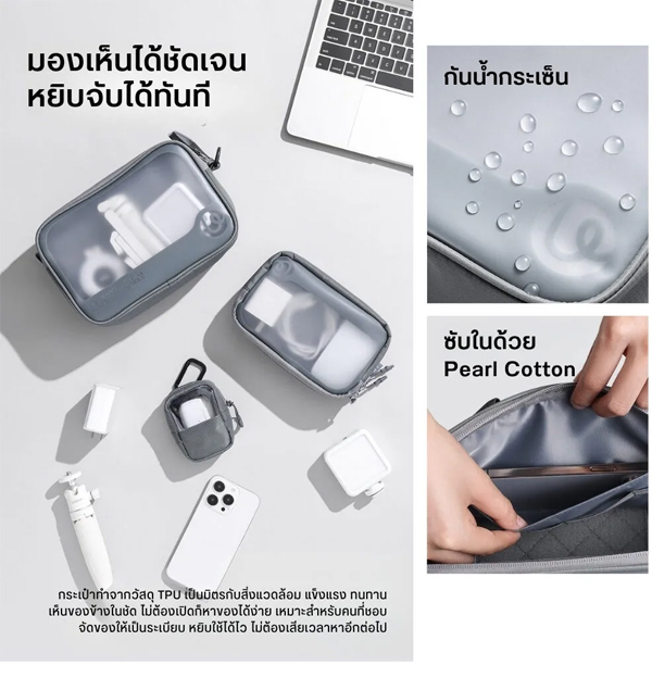 Ulanzi - BP15 SeeClear Tech Pouch กระเป๋าจัดระเบียบใส 3 ขนาด L/M/Mini TPU กันน้ำกระเซ็น 3 ขนาด วัสดุ TPU กันน้ำกระเซ็น มองเห็นของภายในชัดเจน เหมาะสำหรับอุปกรณ์อิเล็กทรอนิกส์