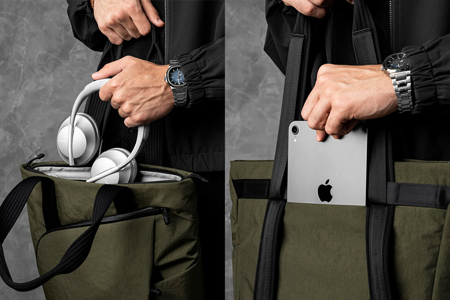 Flow Totepack สลับระหว่างโหมดกระเป๋าเป้สำหรับเดินทางไปทำงานและโหมดกระเป๋าโท้ทสำหรับช้อปปิ้งตอนเย็นได้ทันที Flow Totepack ปรับให้เข้ากับจังหวะของคุณและช่วยให้คุณก้าวไปข้างหน้าได้อย่างไม่สะดุด