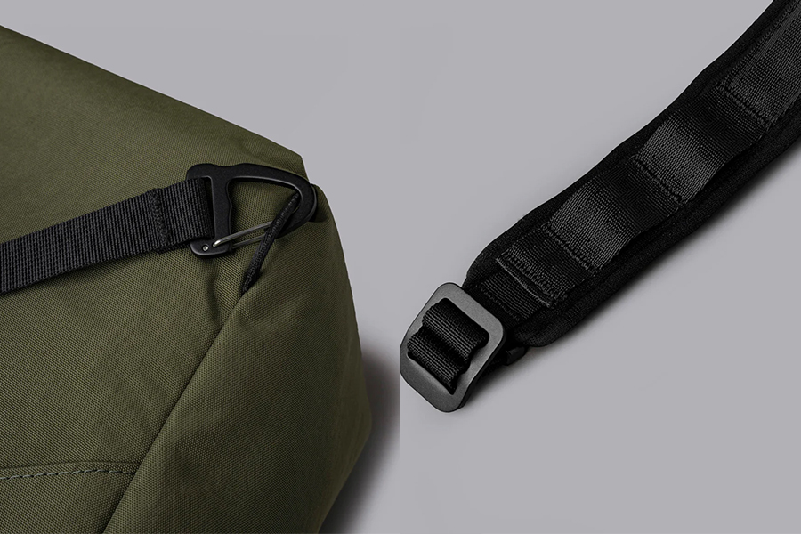 - วัสดุ : EXTERIOR : Axoflux 400D washed nylon in Black, Green, or Moonlight Blue // INTERIOR : Axoflux X-Grid 150D ripstop polyester in Gray