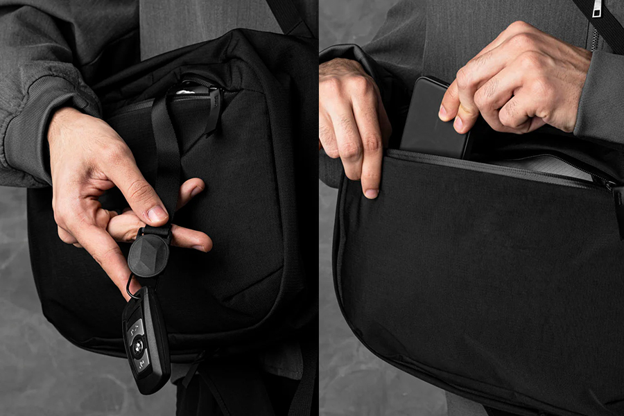 - ซิป Silent waterproof YKK Aquaguard zippers ที่ช่องด้านหน้า