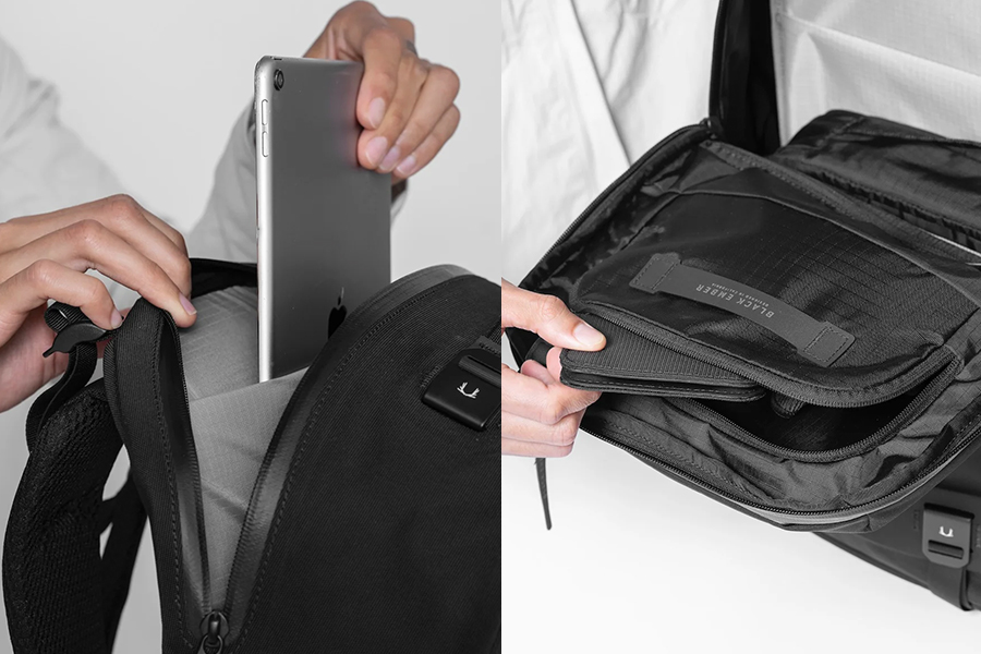 ผลิตภัณฑ์ Black Ember ทุกชิ้นผลิตโดยใช้โครงสร้าง BOND-STITCH™ ที่มีความแม่นยำสูง ส่วนประกอบสิ่งทอทั้งหมดถูกตัดด้วยเลเซอร์เพื่อการประกอบที่แม่นยำ โครงสร้างนี้ทำให้ได้กระเป๋าที่ใช้งานได้ดี ทนทาน และมีดีไซน์เรียบง่ายสีดำสนิท