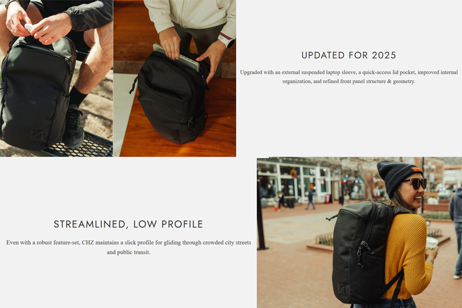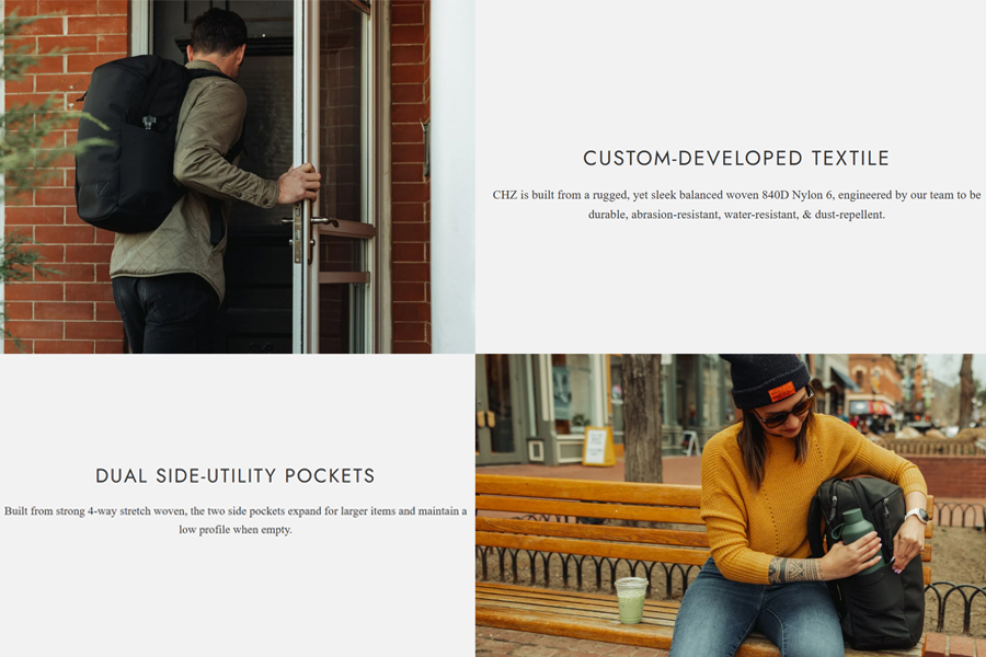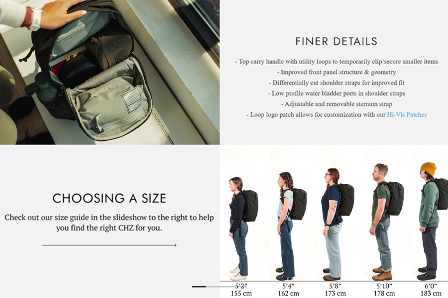 - วัสดุ : Shell Textile Custom developed 840d ballistic nylon 6 balanced woven with C0 durable water repellent finish. // Shell textile is made from a an eco-friendly solution dyeing process. // Lining Fabric 420d HT nylon with PU coating // Shoulder pad foam: Zote EV50 // Frame Sheet: HDPE // Zippers: YKK #10RC and #8RC with DWR finish