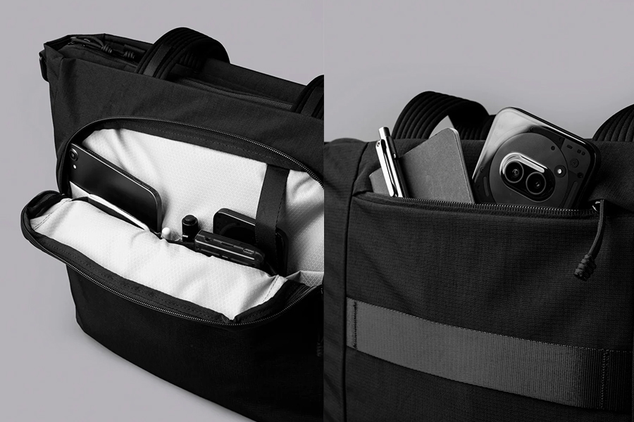 - วัสดุ : EXTERIOR Axoflux 400D ripstop nylon in Black or Green // INTERIOR Axoflux X-Grid 150D ripstop polyester in Gray