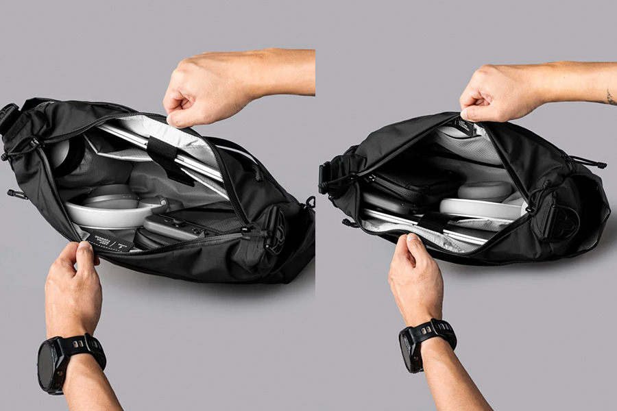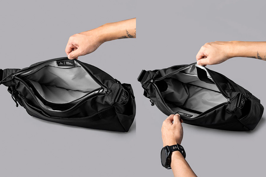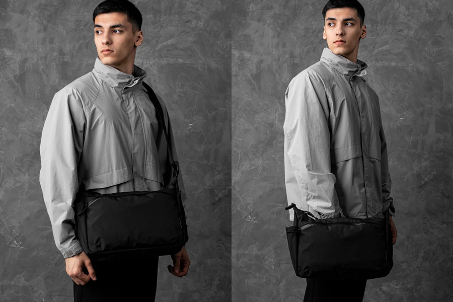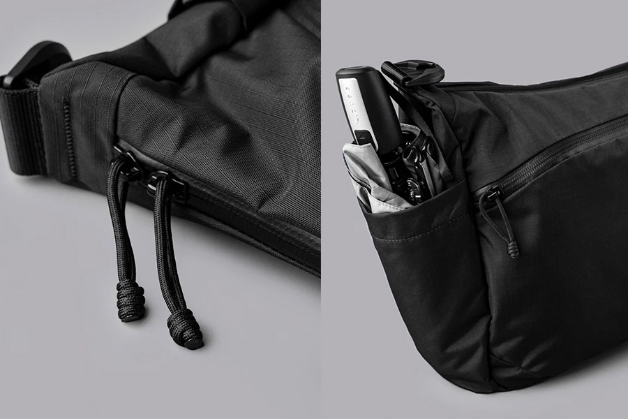 - วัสดุ : EXTERIOR Axoflux 210D ripstop nylon // INTERIOR X-Grid 150D ripstop polyester in Gray