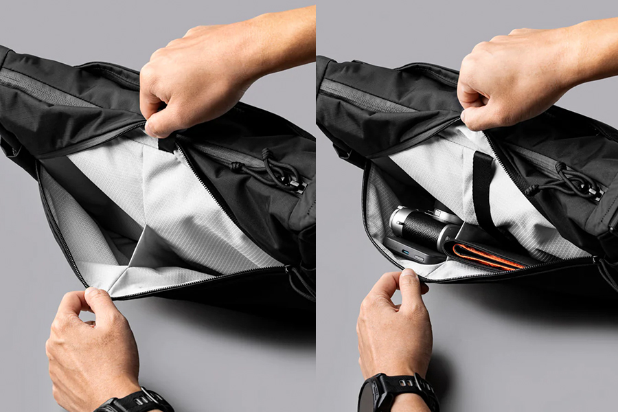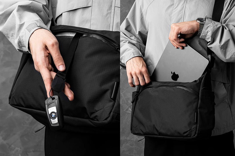 - ช่องเก็บของด้านหน้าพร้อมตัวแบ่งเพื่อความสะดวกในการจัดเก็บ และสายรัดกุญแจ MOD