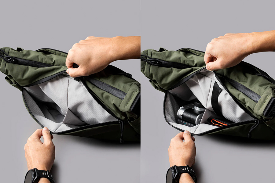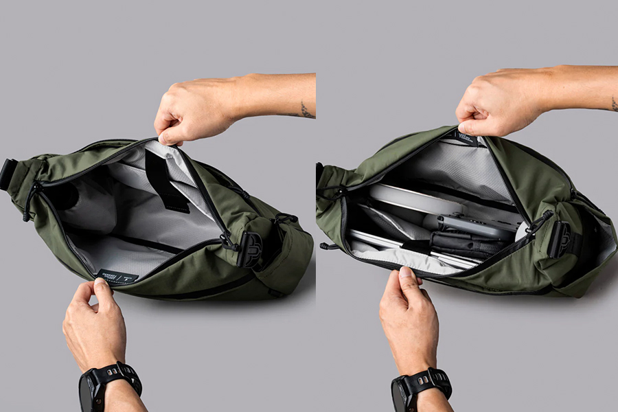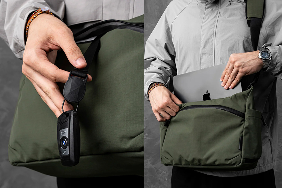 - ช่องเก็บของด้านหน้าพร้อมตัวแบ่งเพื่อความสะดวกในการจัดเก็บ และสายรัดกุญแจ MOD