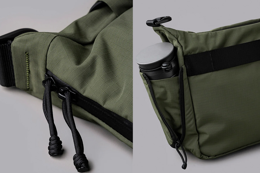 - วัสดุ : EXTERIOR Axoflux 210D ripstop nylon // INTERIOR X-Grid 150D ripstop polyester in Gray