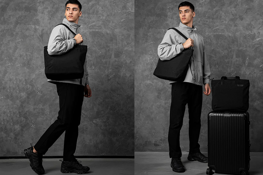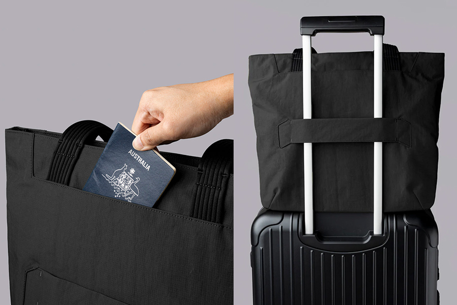 - ช่องกระเป๋าหลังด้านนอก พร้อมช่องสำหรับสอดกระเป๋าล้อลาก