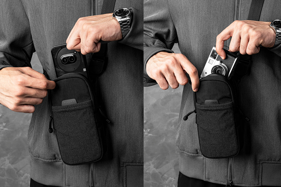 ช่องด้านหน้าแบบยืดหยุ่น ผ้า Stretch-dyne สำหรับใส่โทรศัพท์ ช่องด้านหลังมีสายดึงเร็วสำหรับใส่บัตร ช่องหลักสำหรับใส่ของอื่นๆ พร้อมช่อง Stretch-dyne อีกช่องด้านใน ให้คุณพร้อมใช้งานทุกสถานการณ์ ตั้งแต่การวิ่งตอนเช้าไปจนถึงเที่ยวบินตอนเย็น พกพาแบบคล่องตัว สะดวก รวดเร็ว ไม่ทำให้เสียเวลา