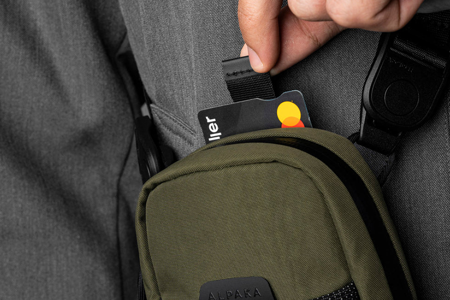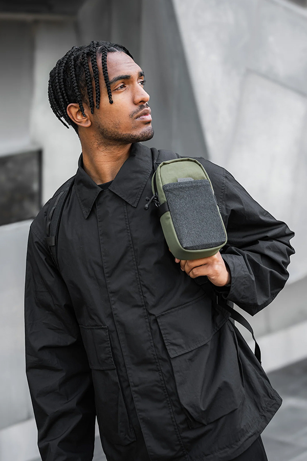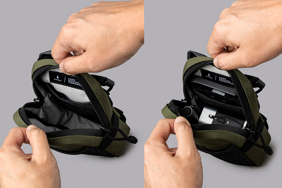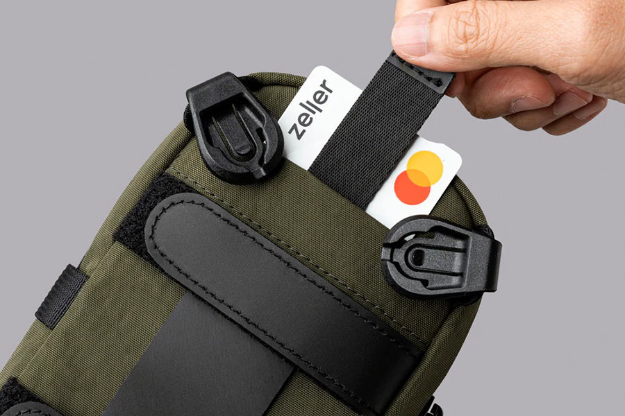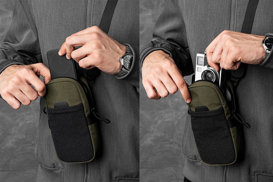 - ช่องด้านหน้าทำจากวัสดุ Stretch-dyne เข้าถึงง่าย