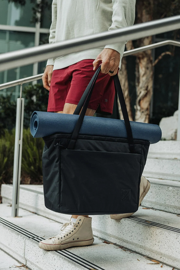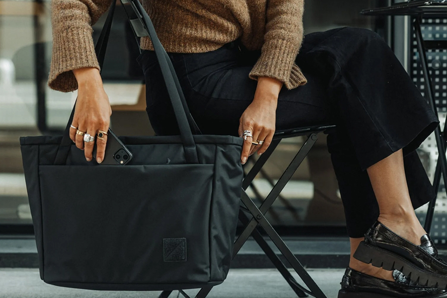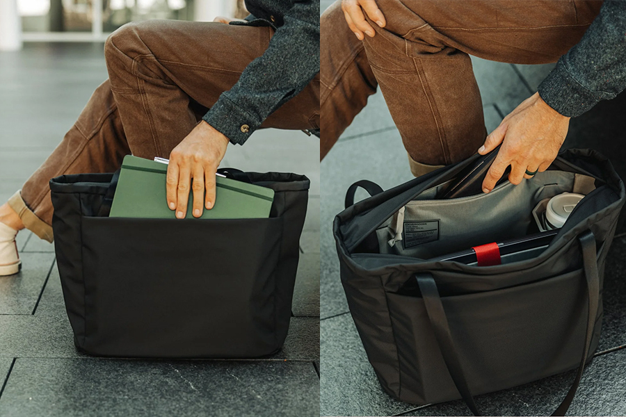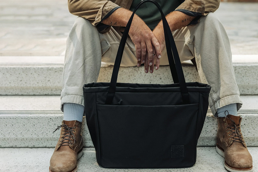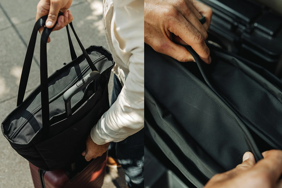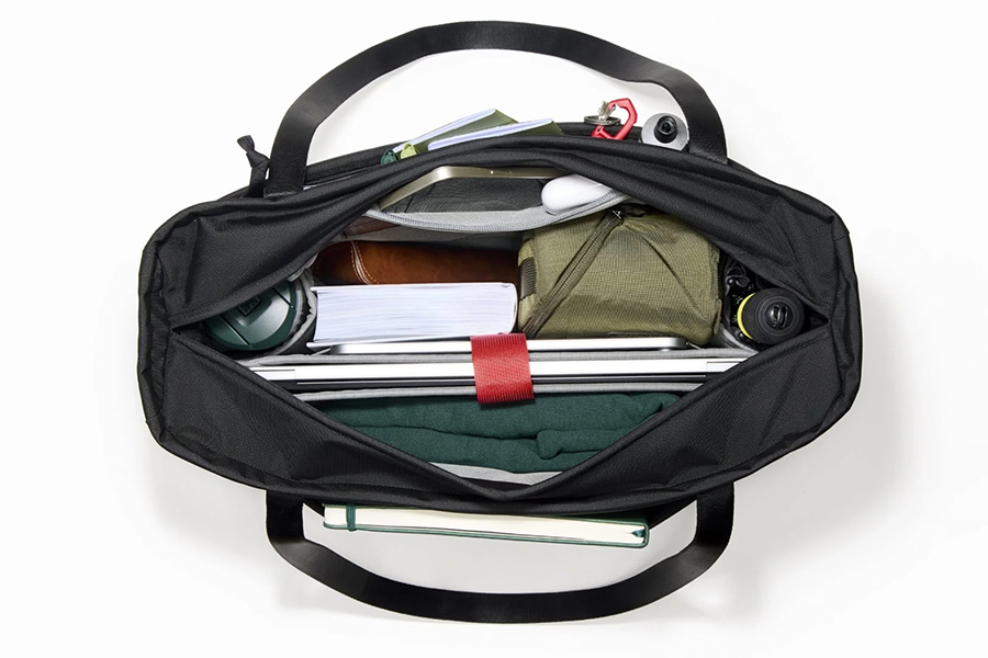 Standard Gray 420d HT nylon 6,6 with PU coating // Handles: Custom-woven tubular nylon webbing with a foam core and three low-profile N52 magnets set in the apex of each handle // Foam: 3mm cross-linked polyethylene for structure and padding // Magnet Closure: Two rows of stacked cylindrical neodymium grade N52 magnets// Zippers: Durable luggage zippers. YKK #8RC. Exterior zippers are dipped with DWR treatment