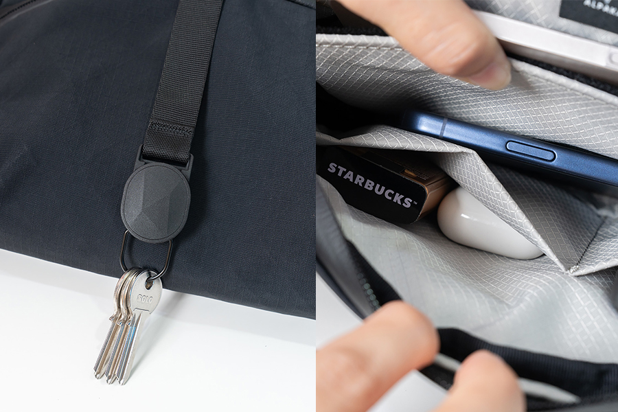 - มาพร้อมสายคล้องกุญแจแม่เหล็ก MOD Key Tether ที่ช่องด้านหน้า