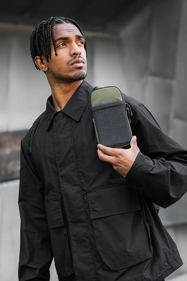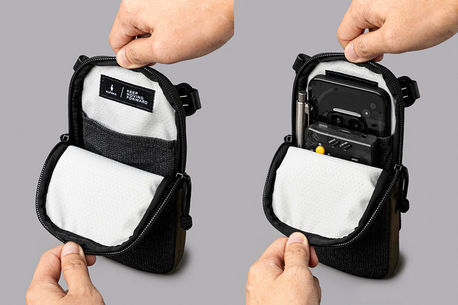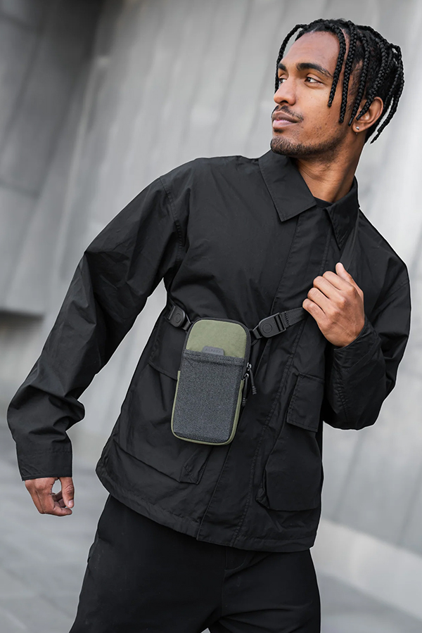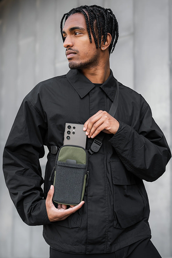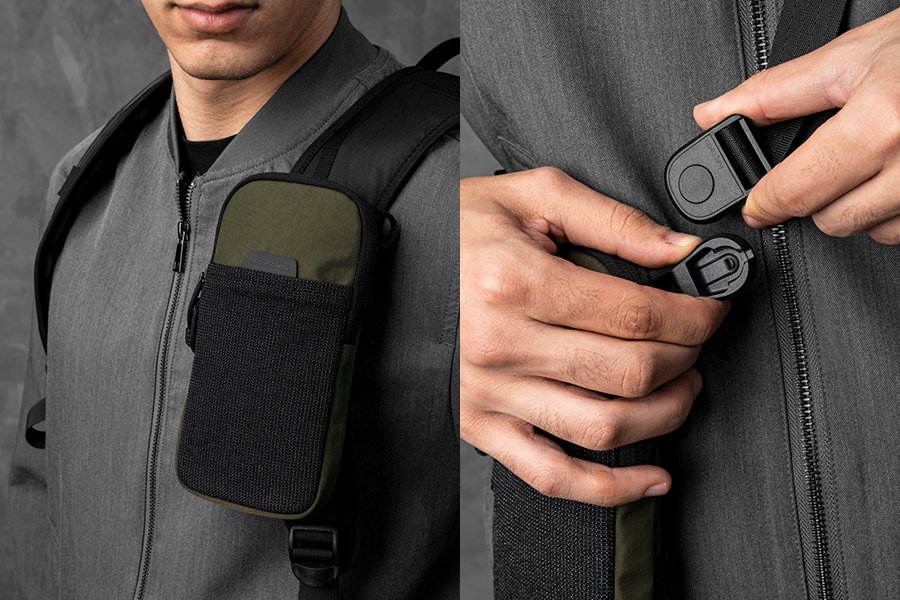 - ช่องด้านหน้าทำจากวัสดุ Stretch-dyne เข้าถึงง่าย