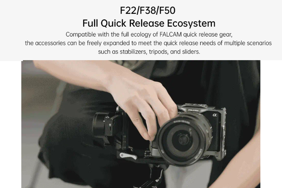- ความเข้ากันได้: FALCAM Quick Release Ecosystem (Stabilizers, Tripods, Slider)