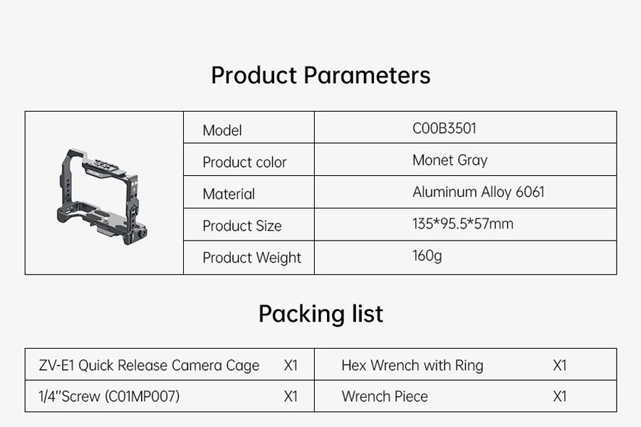 ปลอดภัยและแข็งแรง (Safe and Stable): ผลิตจากอลูมิเนียมอัลลอย 6061 คุณภาพสูง (High-strength aluminum alloy) แผ่นกันลื่น (Anti-slip Pad) ในตัวปกป้องกล้องอย่างปลอดภัย โครงสร้างแข็งแรงทนทาน (Stable and Durable) การประมวลผล CNC ที่ละเอียดและแม่นยำ