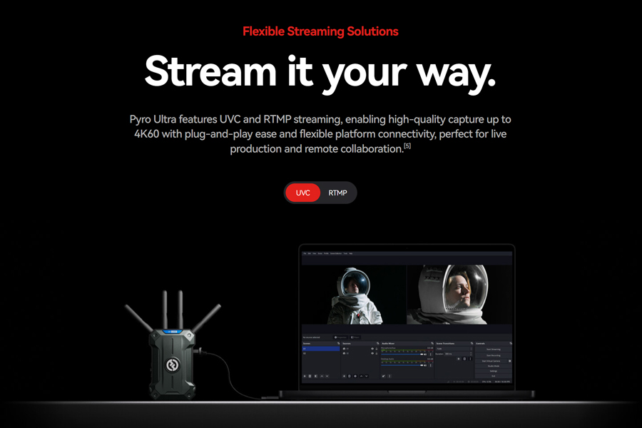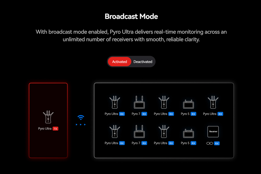 Ecosystem Compatibility: Non-Broadcast Mode: Pyro H, Pyro S, Pyro 7, Pyro 5, Pyro 5 4K, Vcore, Broadcast Mode: Pyro 5, Pyro 5 4K, Pyro 7, Pyro S (Available in June, 2026)