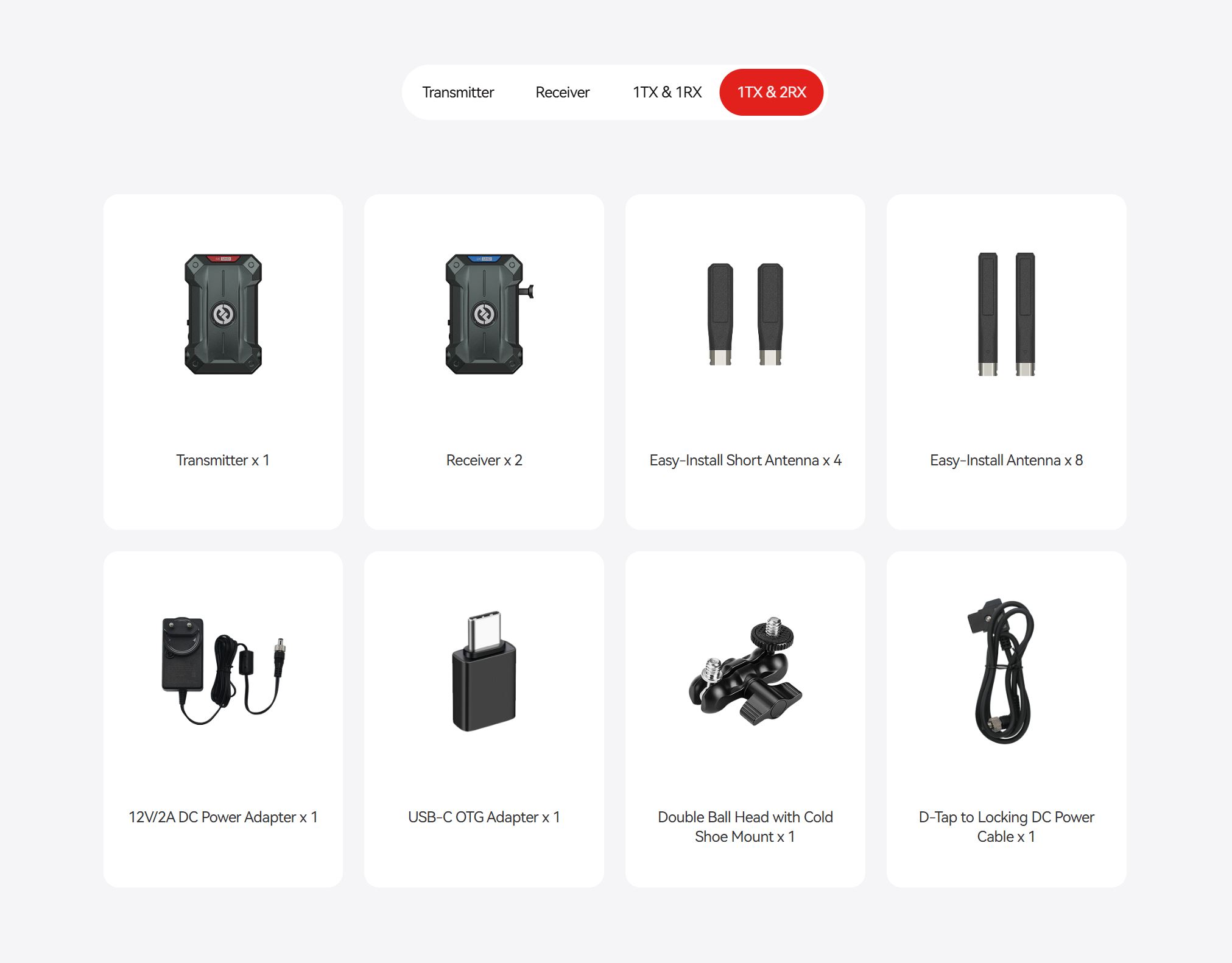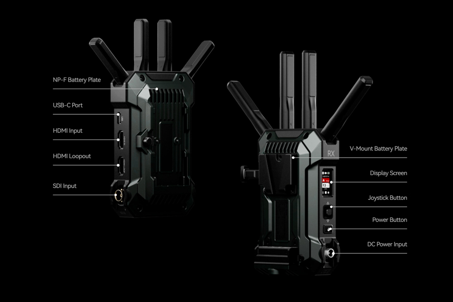 Power Supply TX: NPF/DC (Locking), RX: V-mount/DC (Locking)