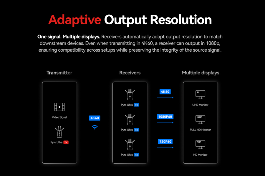 Broadcast Mode: Unlimited (Up to 20 RXs for Optimal Performance) Signal Stability Auto Frequency Hopping (< 1s)