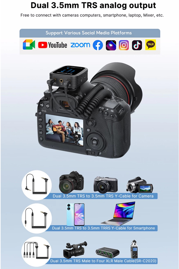 - TX รองรับการบันทึกเสียงในตัว มาพร้อมการ์ดความจำในตัว 8GB ที่ความคมชัด 48KHz 24Bit บันทึกเป็นไฟล์ WAV