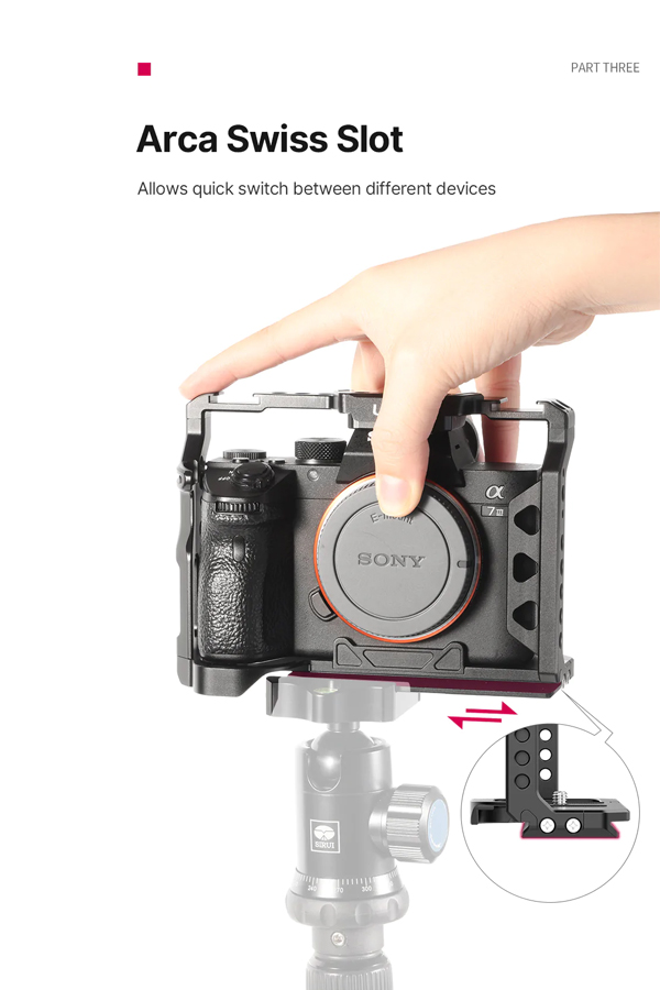 - ตัวฐานของเคสออกแบบมารองรับการใช้งานกับขาตั้งใช้ระบบ arca swiss ทำให้การใช้งานสะดวกสบายมากยิ่งขึ้น