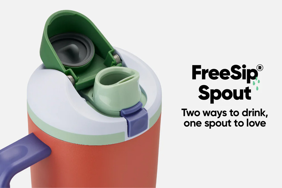 - ปากดื่ม FreeSip ที่ได้รับการจดสิทธิบัตร พร้อมหลอดดูดในตัว ช่วยให้คุณจิบหรือดื่มได้อย่างรวดเร็ว
