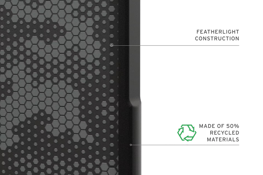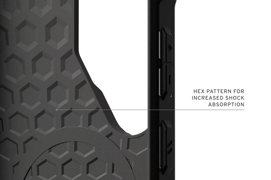 - ภายในเคสออกแบบให้มีลายหกเหลี่ยม หรือ Hex Pattern เพื่อช่วยดูดซับแรงกระแทก ทำให้เครื่องของคุณปลอดภัยในทุกสถานการณ์