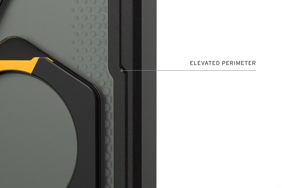 - ขอบหน้าจอเคสยกขึ้นเพื่อป้องกันเวลาวางบนพื้นเรียบ