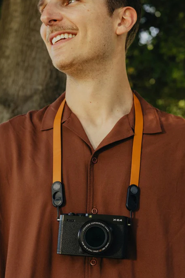 - หนังวัวแท้แบบ full-grain คุณภาพเยี่ยม นุ่ม ทนทาน ระดับพรีเมียม ระดับ “Gold-rated” โดย Leather Working Group และจะเกิด คราบสวยงาม (patina) ตามกาลเวลา การเคลือบผิวแบบกำหนดเอง ที่ด้านหลัง สายคล้องมีความแข็งแรงเพียงพอสำหรับชุดกล้องส่วนใหญ่ แต่ปรับให้เหมาะสมที่สุดสำหรับการพกพาอุปกรณ์ขนาดเล็ก