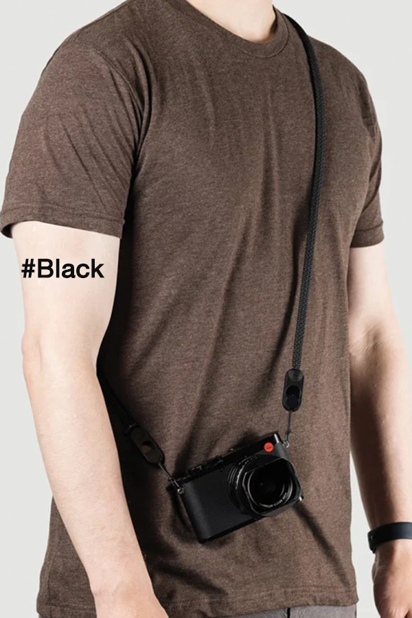 - ห่วงอลูมิเนียมสำหรับเก็บอุปกรณ์เสริมบนตัวสาย หรือใช้สะพายกล้องแบบจุดเดียว (เฉพาะขนาดสะพายข้าง - ไม่มีในขนาดคล้องคอ)