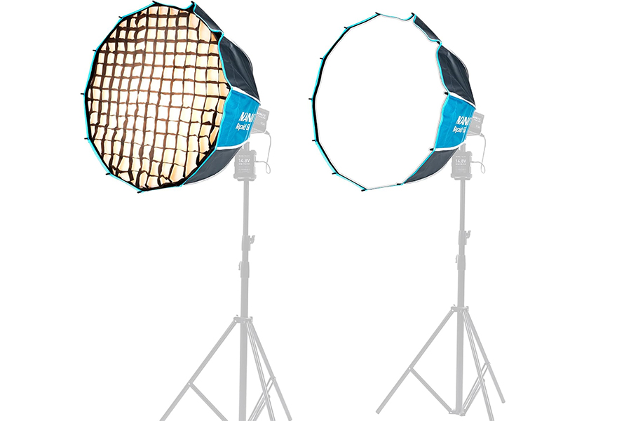 - มี grid ในตัว : มาพร้อมกับ egg-crate grid และแผ่นกระจายแสง 2 ชั้น ถอดออกได้ง่ายด้วยตัวยึดแบบตีนตุ๊กแก ด้านในเป็นผ้าสะท้อนแสงสีเงิน มีกระเป๋าสำหรับพกพาให้ด้วย