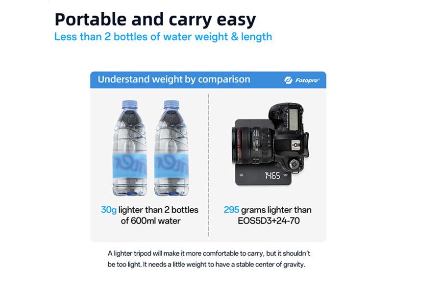 - ทำจากคาร์บอนไฟเบอร์และอลูมิเนียมที่ใช้งานได้เต็มรูปแบบสำหรับการถ่ายภาพ