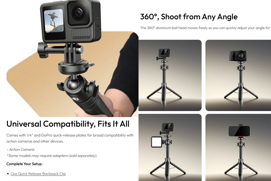 - ความเข้ากันได้อย่างครอบคลุม: แผ่นยึด 1/4″ Quick-Release Plate สำหรับกล้อง DSLR และ Mirrorless แผ่นยึด GoPro Quick-Release Plate สำหรับ Action Camera รองรับสมาร์ทโฟนด้วยอุปกรณ์เสริม เข้ากันได้กับ Backpack Clip (จำหน่ายแยก)